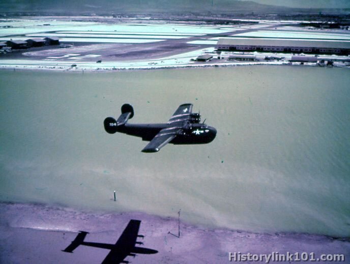 PB2Y-5 "Coronado" in flight at Naval Air Station. Honolulu, TH. Sept. 2, 1945