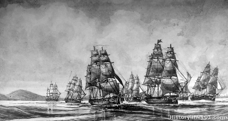 Essex and Prizes leaving Tumbey Bay