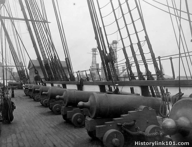 USS Constitution - Starboard battery from quarter deck. August 18, 1914