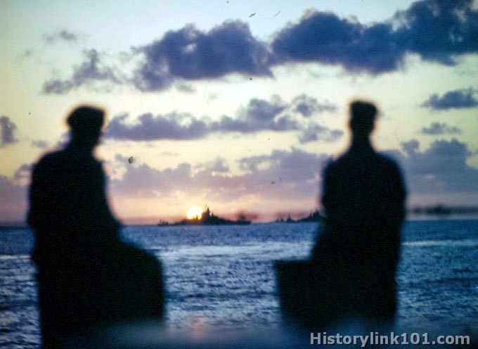 Pacific sunset as seen from USS Nevada. March 26, 1945