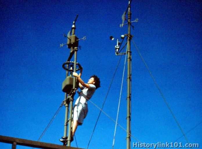 WAVE's at the NAS Santa Ana, CA checking weather instruments on top of tower of the Admin. bldg.