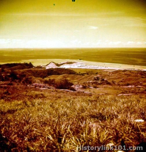 View of the island of Guam. Westerly view of the island of Guam from CinCpac hill. May 1, 1945