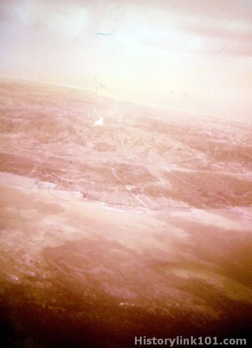 Aerial of airfield at Okinawa, Ryukyus. As seen from plane USS Hornet. April 18, 1945