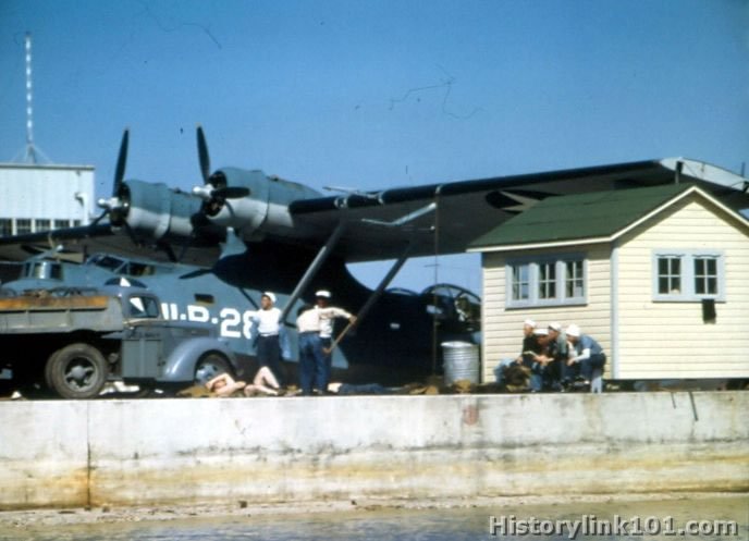 Activities on PBY Squadron. Towing PBY. To left is PV-2.