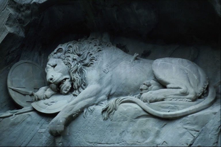 Stone lion, Glacier Gardens, Lucerne, Switzerland