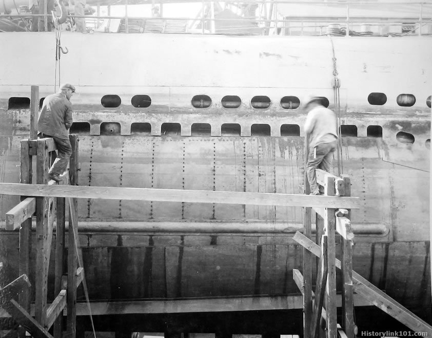 USS V-3 Damaged Plating. March 1929