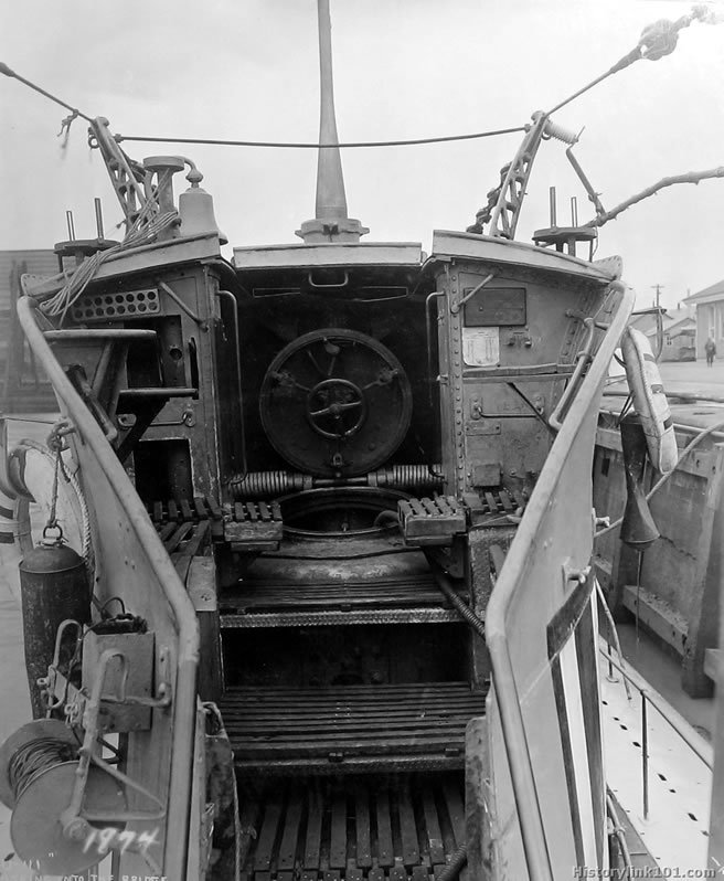 "U-111" Looking into the bridge. Navy Yard, Phila. April 1920