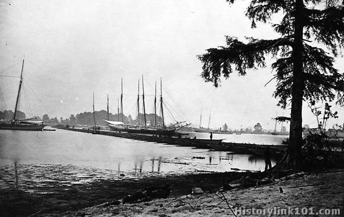 Pontoon across James River at Deep Bottom, Va. 1864-65