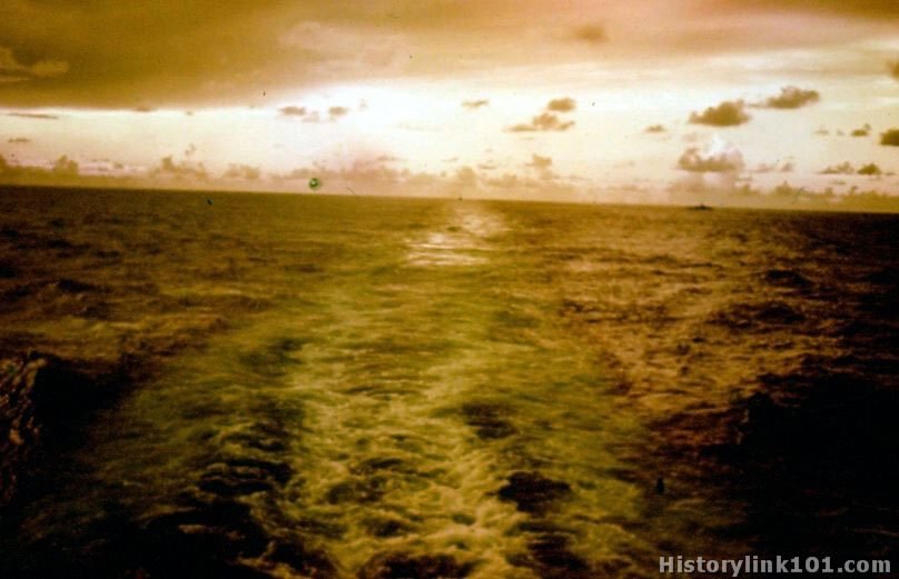 Sunset as seen from deck of the USS Benningtion. August 1945