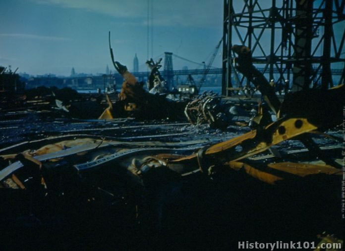 USS Franklin after its return to Brooklyn Navy Yard, New York. Damaged deck.