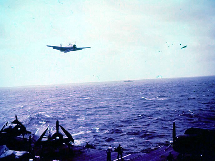 Planes on deck of USS Hornet. March 27, 1945