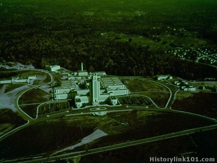 Aerial view of US Naval Hospital, National Naval Medical Center, Bethesda, MD.