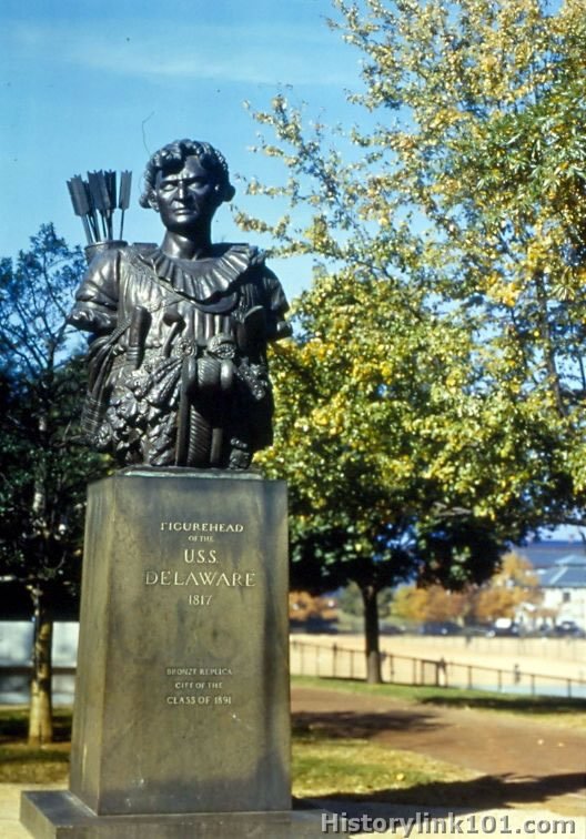 Monument of Tecumsah is shown on grounds of US Naval Acadey, Annapolis, MD.