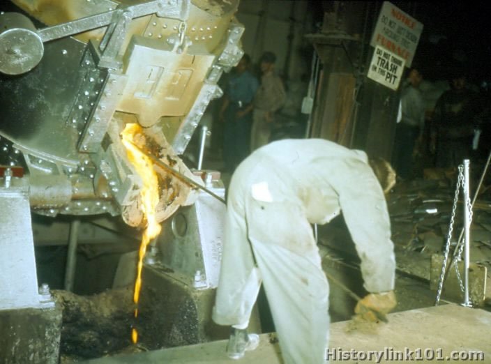 Scenes at Pearl Harbor Navy Yard, TH. At work in foundry.