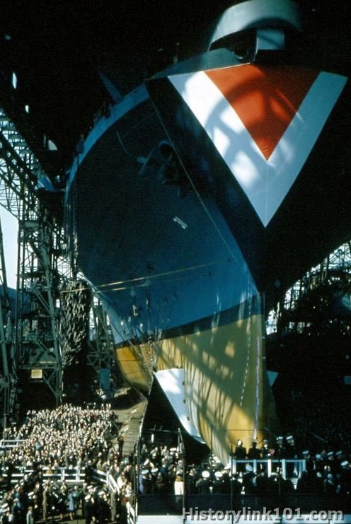 Launching of USS Bon Homme Richard at Brooklyn Navy Yard. April 29, 1944