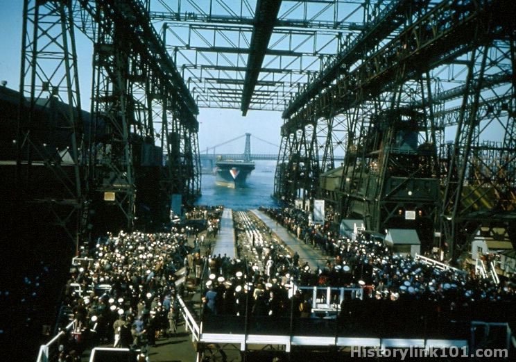 Launching of USS Bon Homme Richard at Brooklyn Navy Yard. April 29, 1944