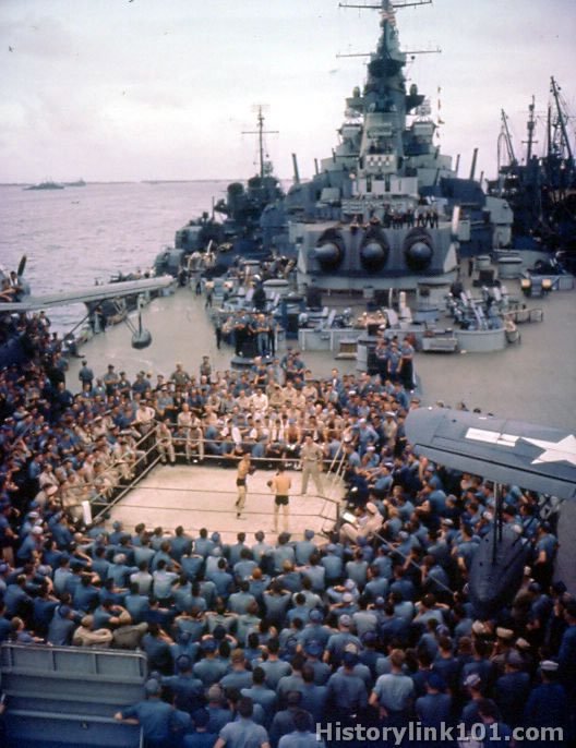Boxing matches are a daily feature for the men of the USS Iowa while in port.