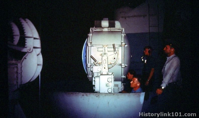 36 inch searchlight aobard the USS Missouri. Side view at night.