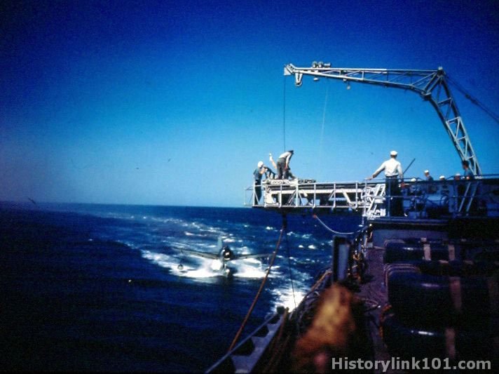 OS2U Kingfisher being recovered from the USS Missouri.