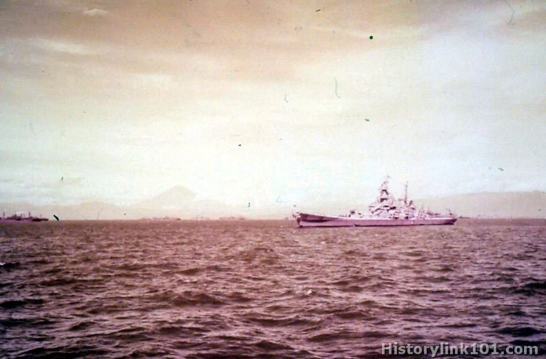USS Missouri at Sagami Wan, Japan; taken from the USS Gisselin. August 27, 1945