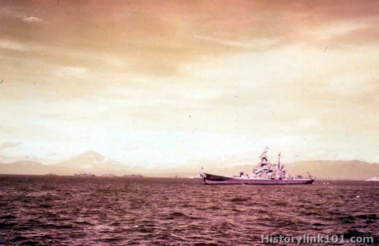 The USS Missouri with other ships of the fleet in Sagami Wan. August 27, 1945