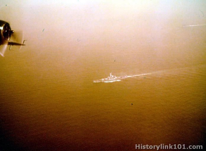 USS South Dakota class as seen by planes from the USS Bennington on May 18, 1945