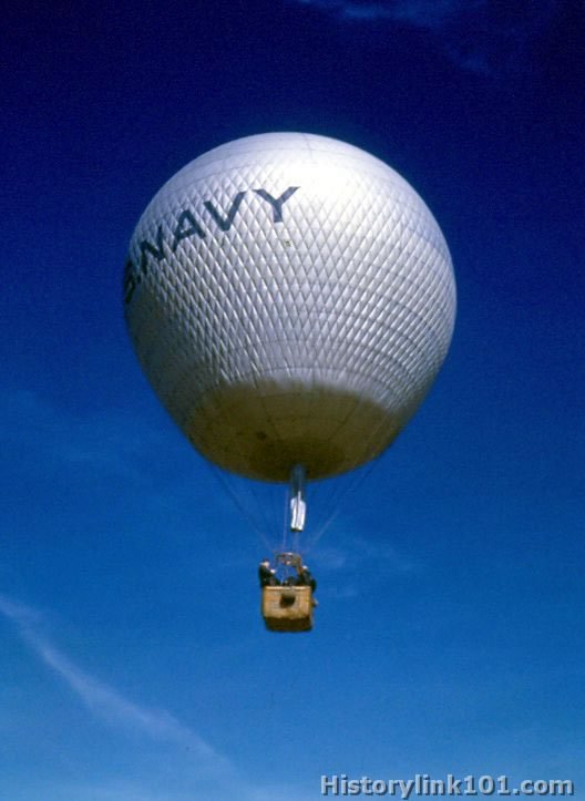 Airship student pilots ascend in free balloon as part of flight training at NAS, Lakehurst, NJ.