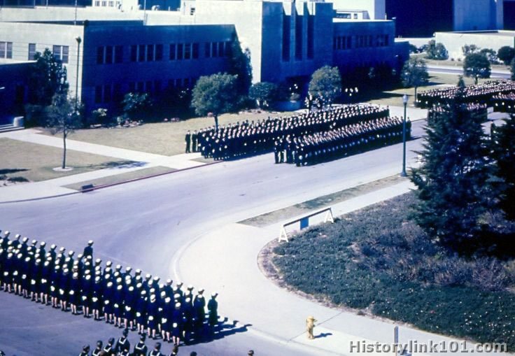 Memorial Services being held at NAS Alameda, CA for the late President Franklin Roosevelt. April 15, 1945