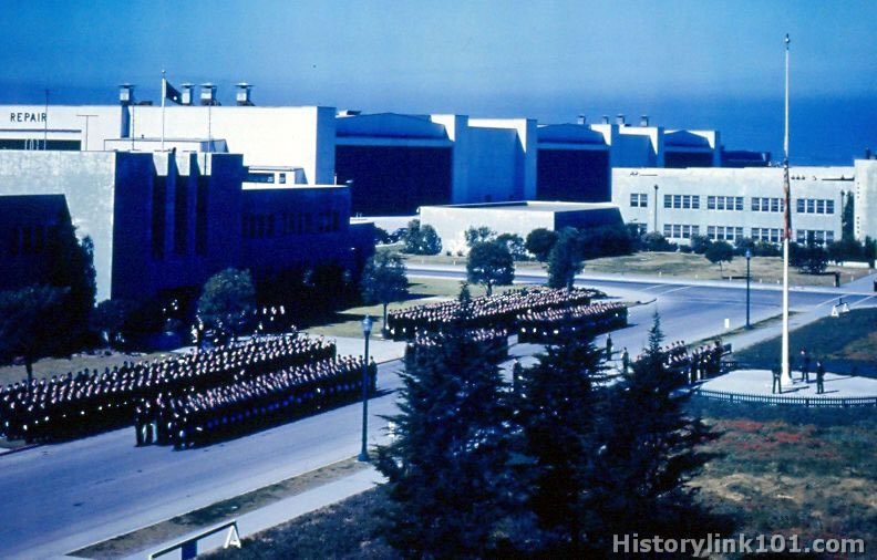 Memorial Services being held at NAS Alameda, CA for the late President Franklin Roosevelt. April 15, 1945