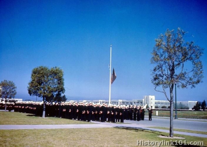 Memorial Services being held at NAS Alameda, CA for the late President Franklin Roosevelt. April 15, 1945