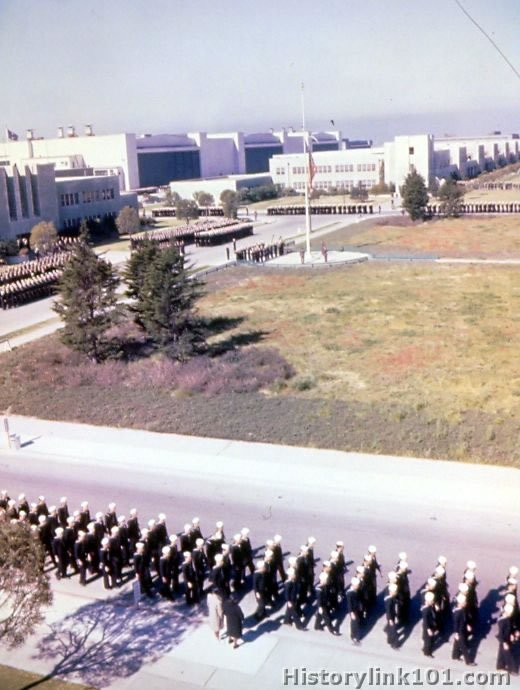Memorial Services being held at NAS Alameda, CA for the late President Franklin Roosevelt. April 15, 1945