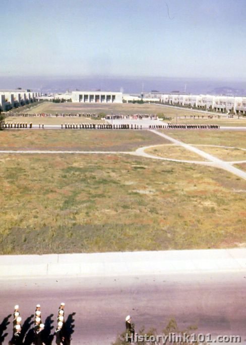 Memorial Services being held at NAS Alameda, CA for the late President Franklin Roosevelt. April 15, 1945