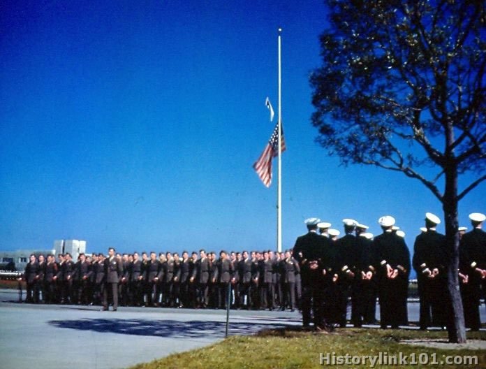 Memorial Services being held at NAS Alameda, CA for the late President Franklin Roosevelt. April 15, 1945