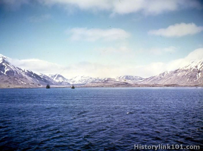 Massacre Bay, Attu, is shown after invasion by US Troops. Looking toward Yellow Beach.