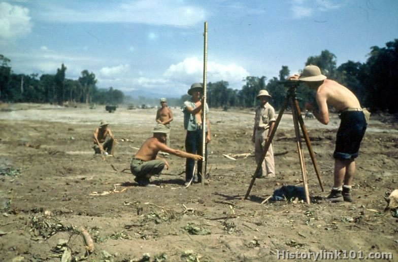 Construction of new bomber strip, Bougainville Island. Surveying. December 15-19, 1943