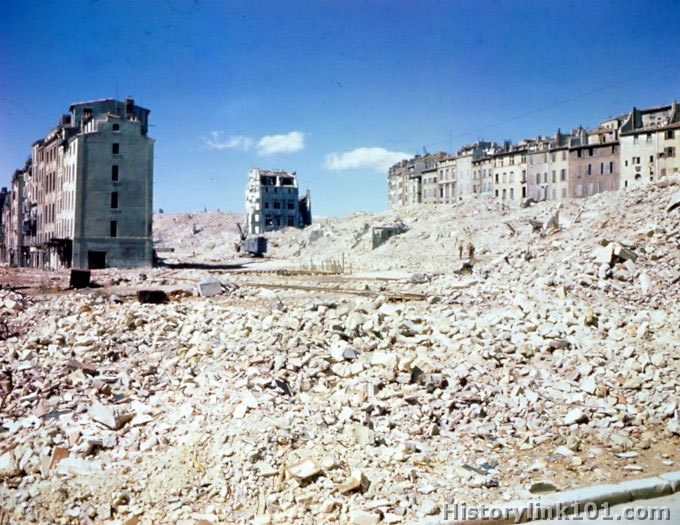 Wreckage is shown at Toulon, France after Allied forces took over after heavy fight.