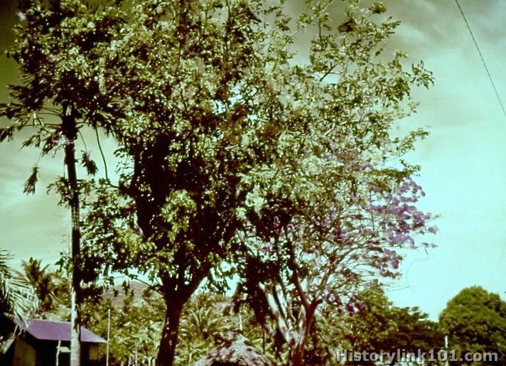 Scene of flowers and trees which are green on Guam. July 3, 1945