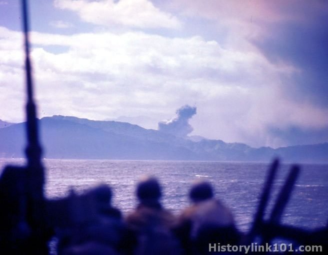Bombardment of Kamaishi, Honshu Japan; taken from the USS South Dakota. July 14, 1945