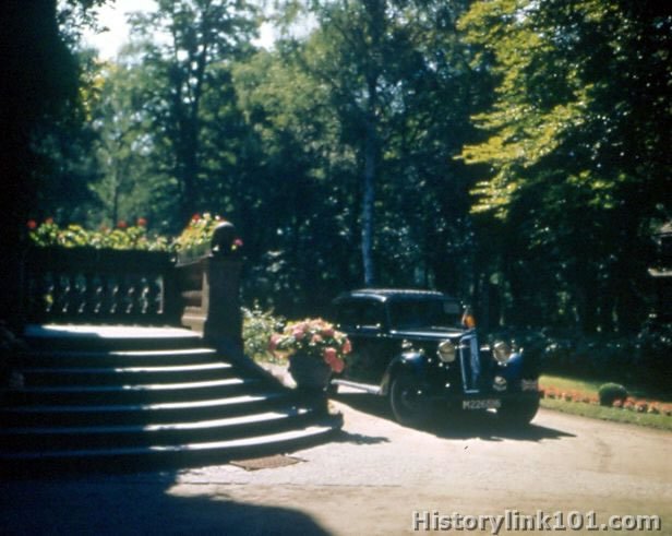 Palace at Potsdam, meeting place of Big 3 is pictured.