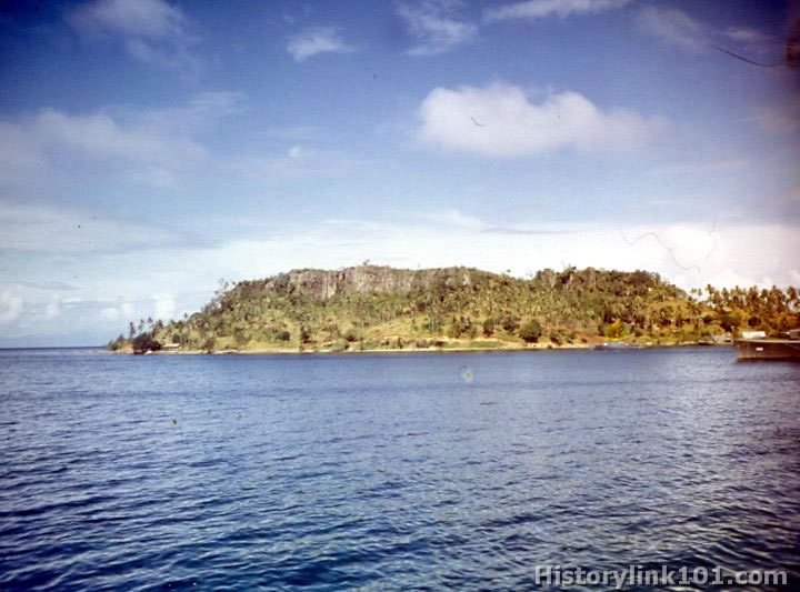 Tulagi Island, Solomon Islands, as seen from the harbor. 1943