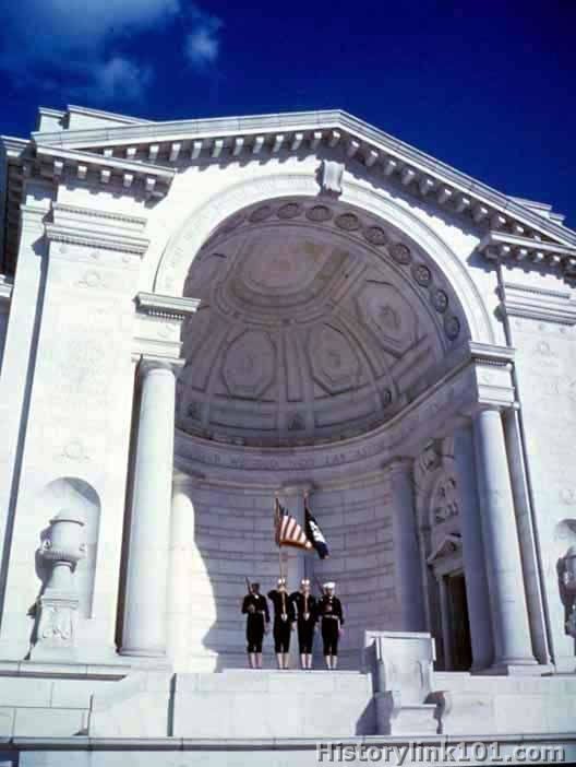 Navy color guard is pictured at Arlington Cemetery, Arlington, VA.