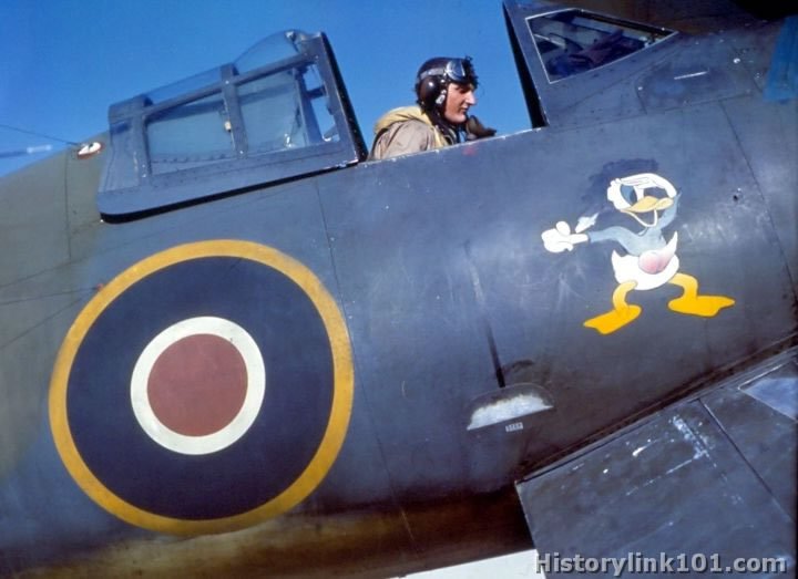 Activities of Royal Navy Air Squadron at NAS, Quonset Point, RI. Pilot is shown in cockpit of F4U that has J Gosling NATC, Pensacola Insignia, painted on side. Sept. 1943