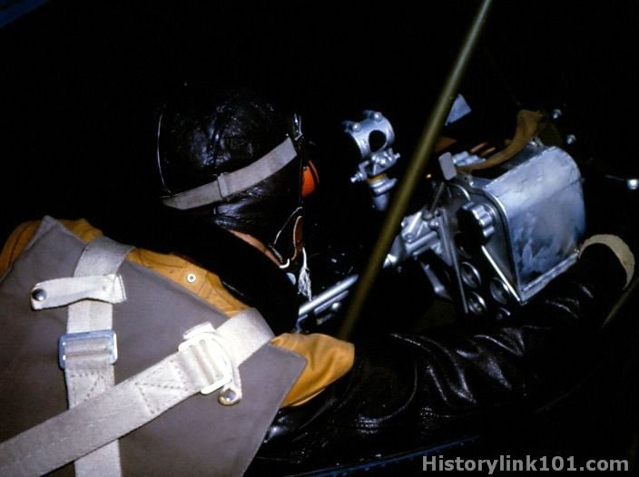 Aerial gunner operates 30 cal. machine gun on Navy plane.