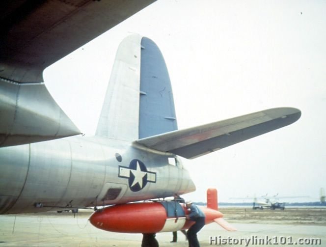 Ordnancemen attach red target sleeve to tail section of JM-1 at NAS, Norfolk, VA.