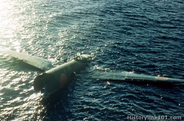 Japanese heavy bomber, Mitsubish, Type 1, broken up in water. Taken by USS Ellet at Tulagi. August 7, 1942
