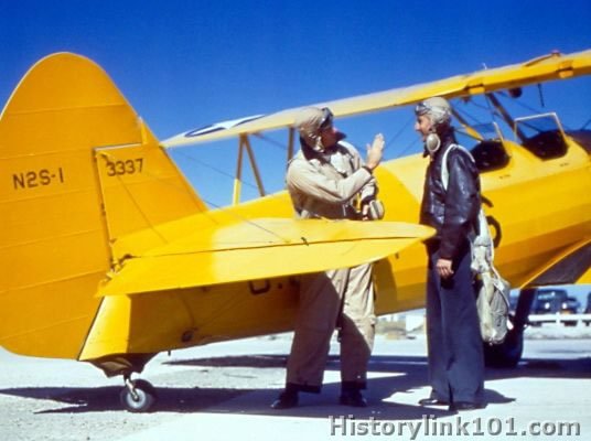 Flight instructor and aviaiton cadet talk over flight they completed in N2S-1.