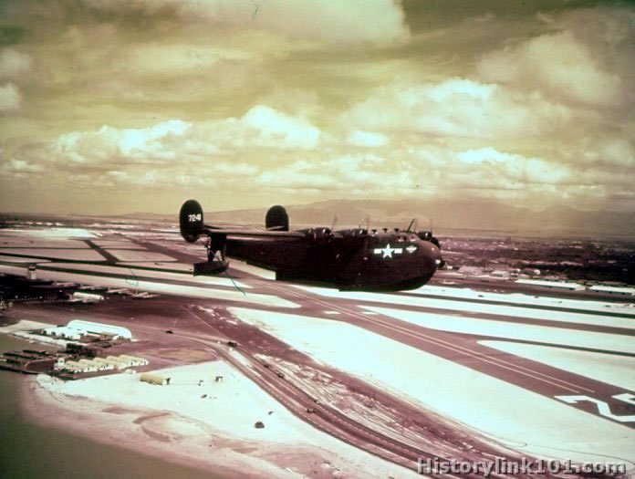 PB2Y-5 "Coronado" in flight at Naval Air Station. Honolulu, TH. Sept. 2, 1945