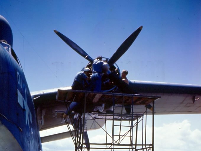 Various activities and scenes are shown at NAS, Guantanamo Bay, Cuba. Repairing engines of PBM.