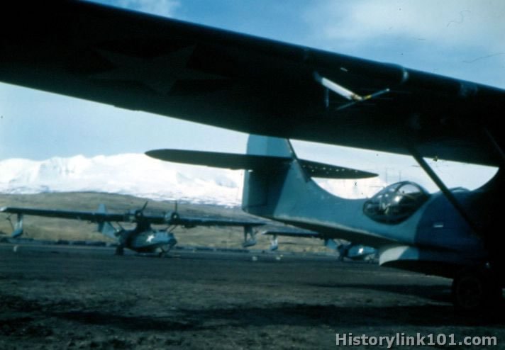 Activities of PBY Squadron. Planes are shown on airfield.