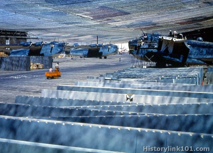 Airplane construction is shown at Consolidated Vulter Plant, San Diego CA where PB2Y's and PB4Y's are built. July 1943